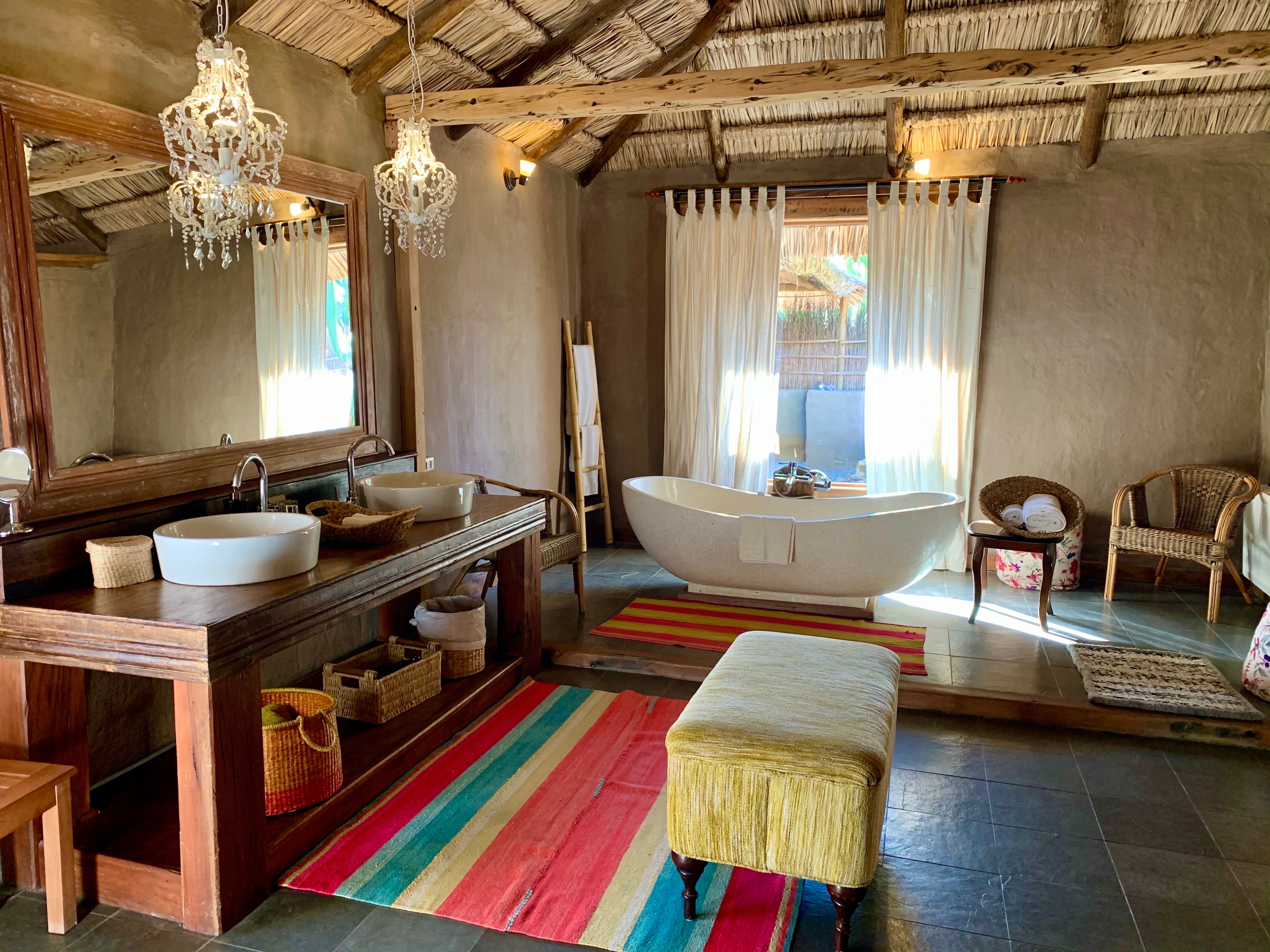 Las ocho habitaciones del Hotel Wara, muy amplias y cómodas, cuentan con un jacuzzi exterior y una terraza. En el interior llaman la atención sus maravillosos y altos techos de totora y una decoración simple pero muy linda con textiles altiplánicos de la zona. En el baño destaca una maravillosa tina y en la pieza la rica chimenea que te prenden antes de acostarte.