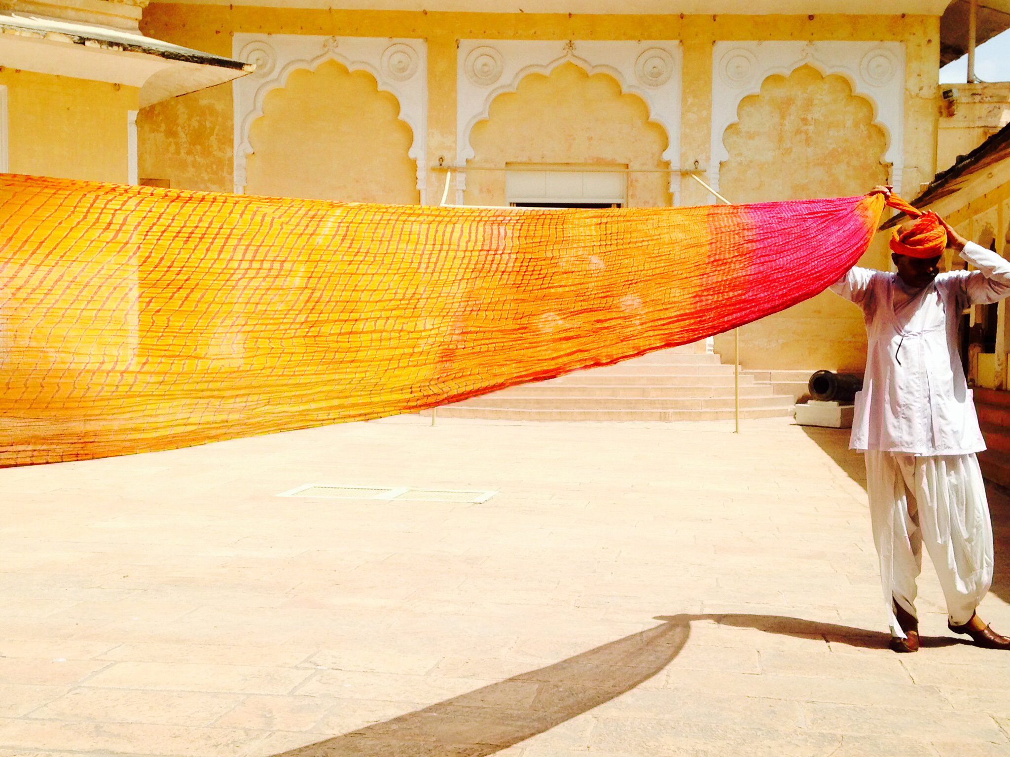 Al día siguiente continuamos el viaje hasta Jaipur (la llamada “Ciudad Rosa”), a 240 kilómetros. Esta es la capital del estado del Rajastán, en el noroeste de la India. La ciudad fue construida en 1727 por el Maharajá Jai Singh II, quien la edificó en estuco rosado para imitar la arenisca roja.